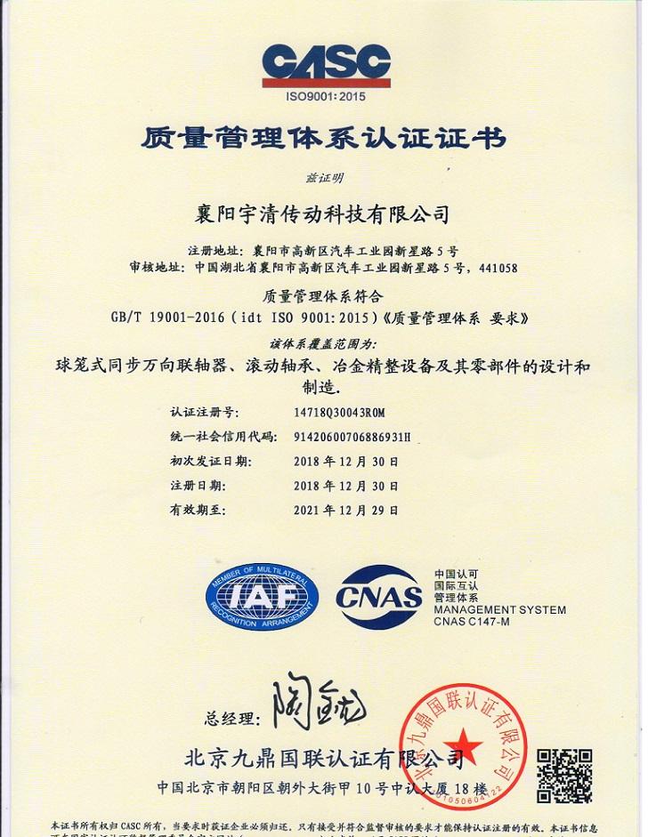 经过大家的共同努力,我公司顺利通过了北京九鼎国联认证有限公司监督审核的GB/T19001-2016(ISO9001:2015)、IATF16949-2016质量管理体系认证